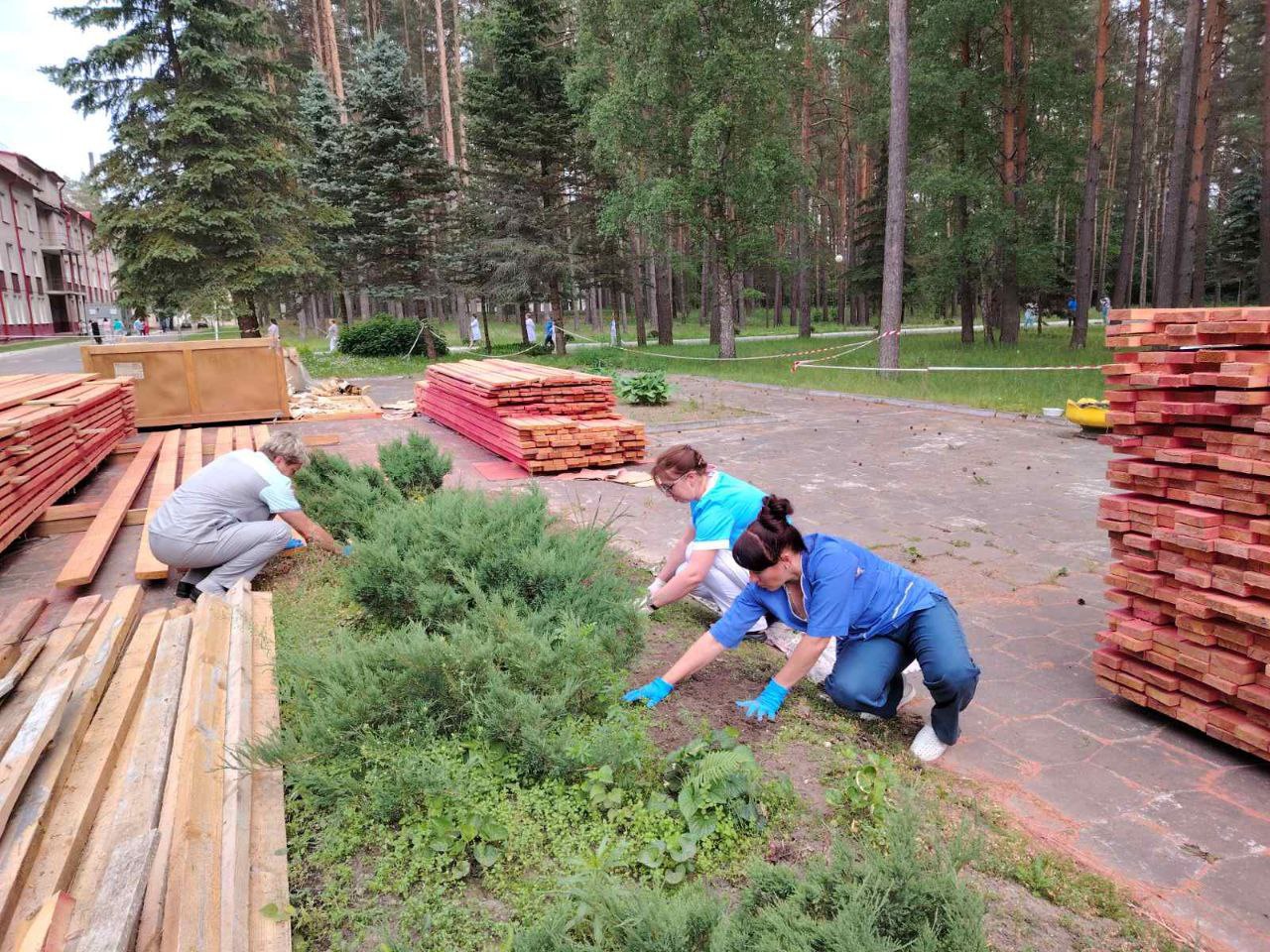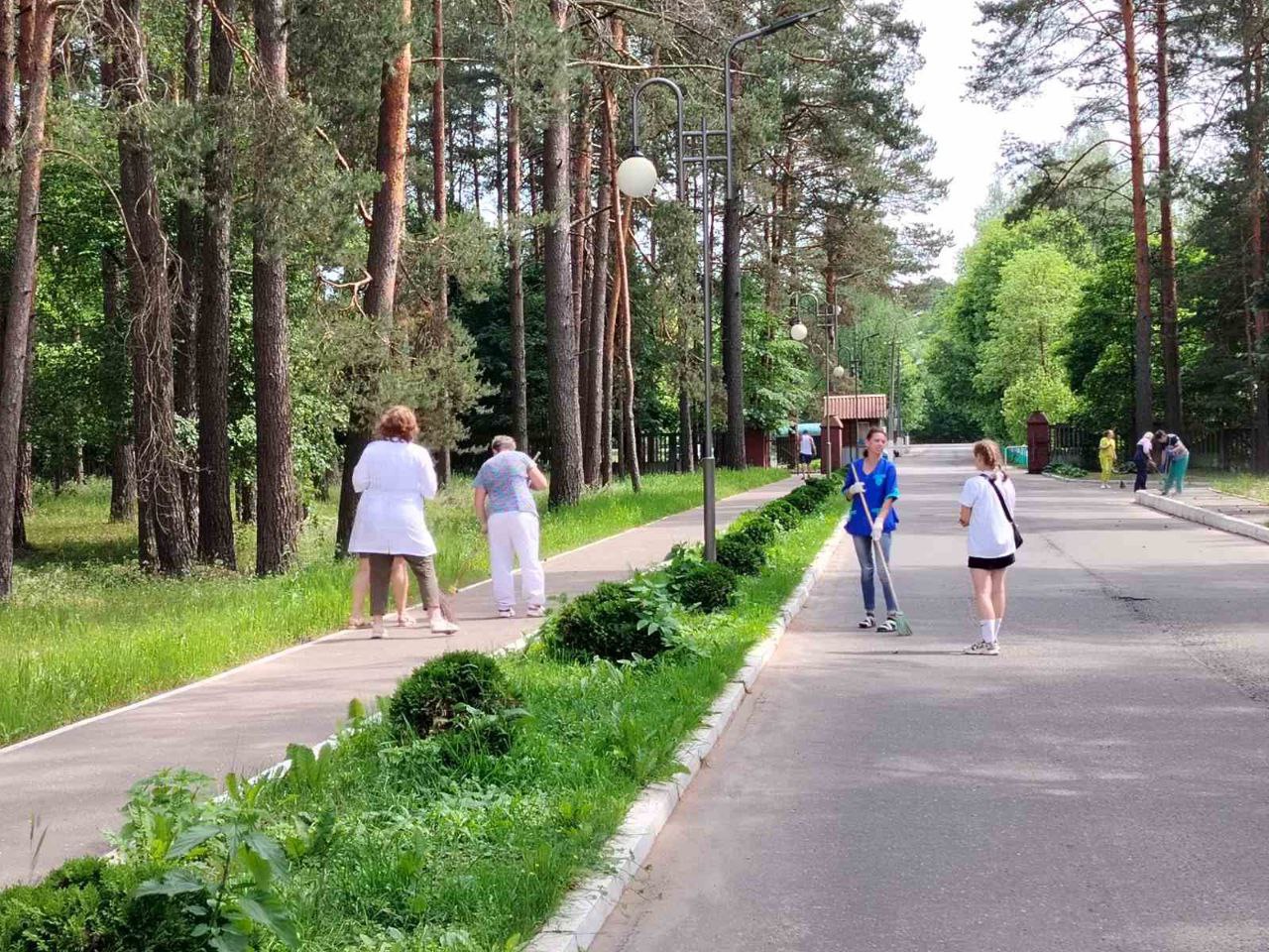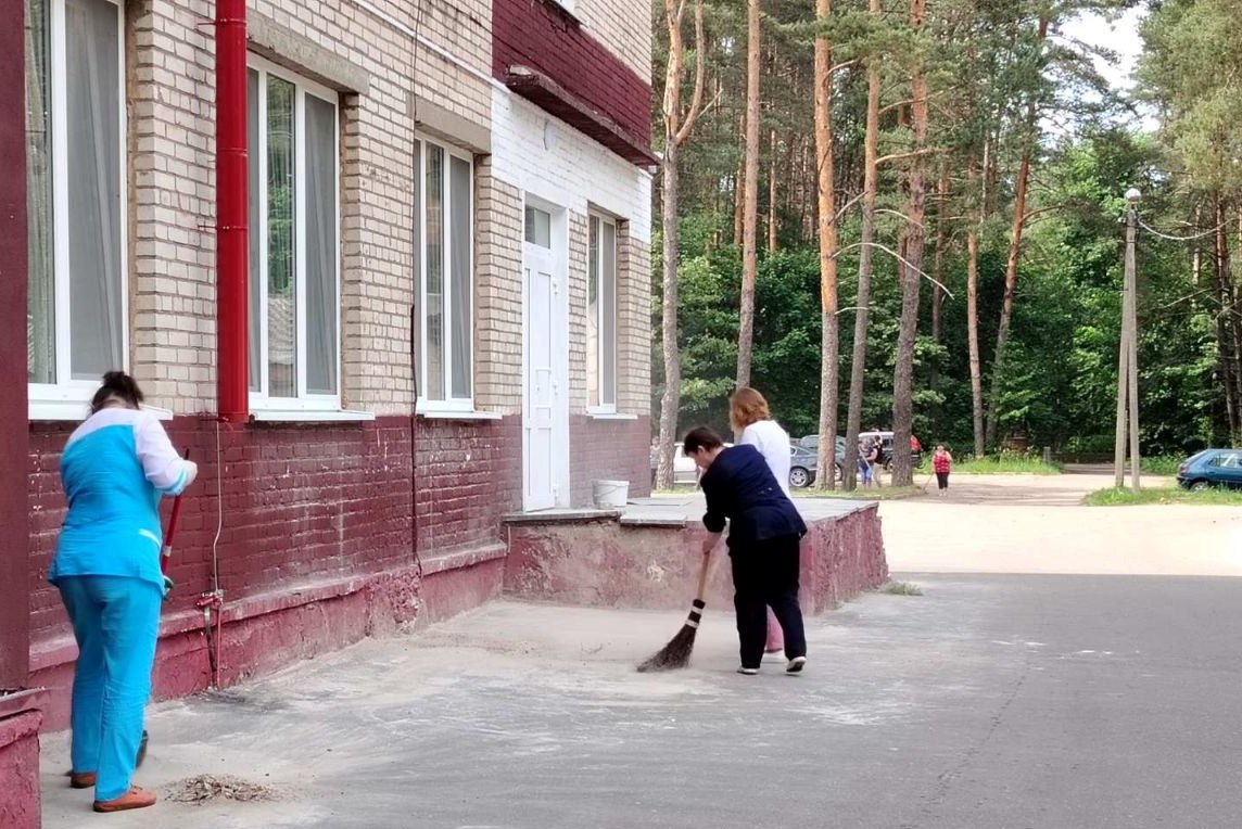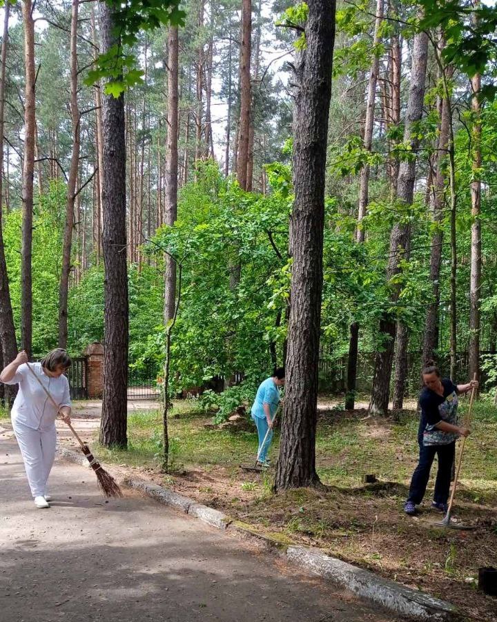 🌳🏥1 июня медики Бешенковичской ЦРБ провели районный субботник. Убраны пешеходные дорожки, проезжая часть, проведена прополка клумб.
